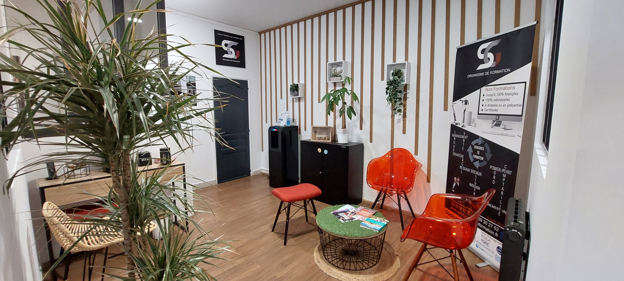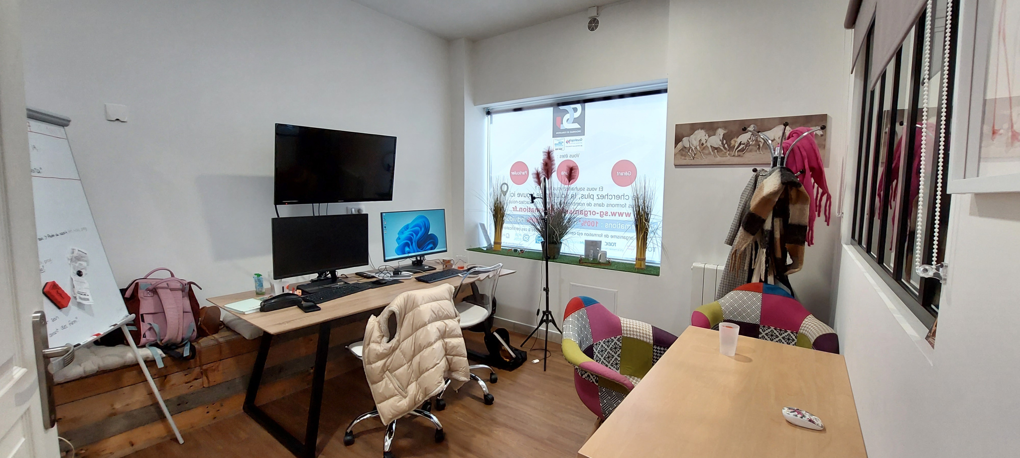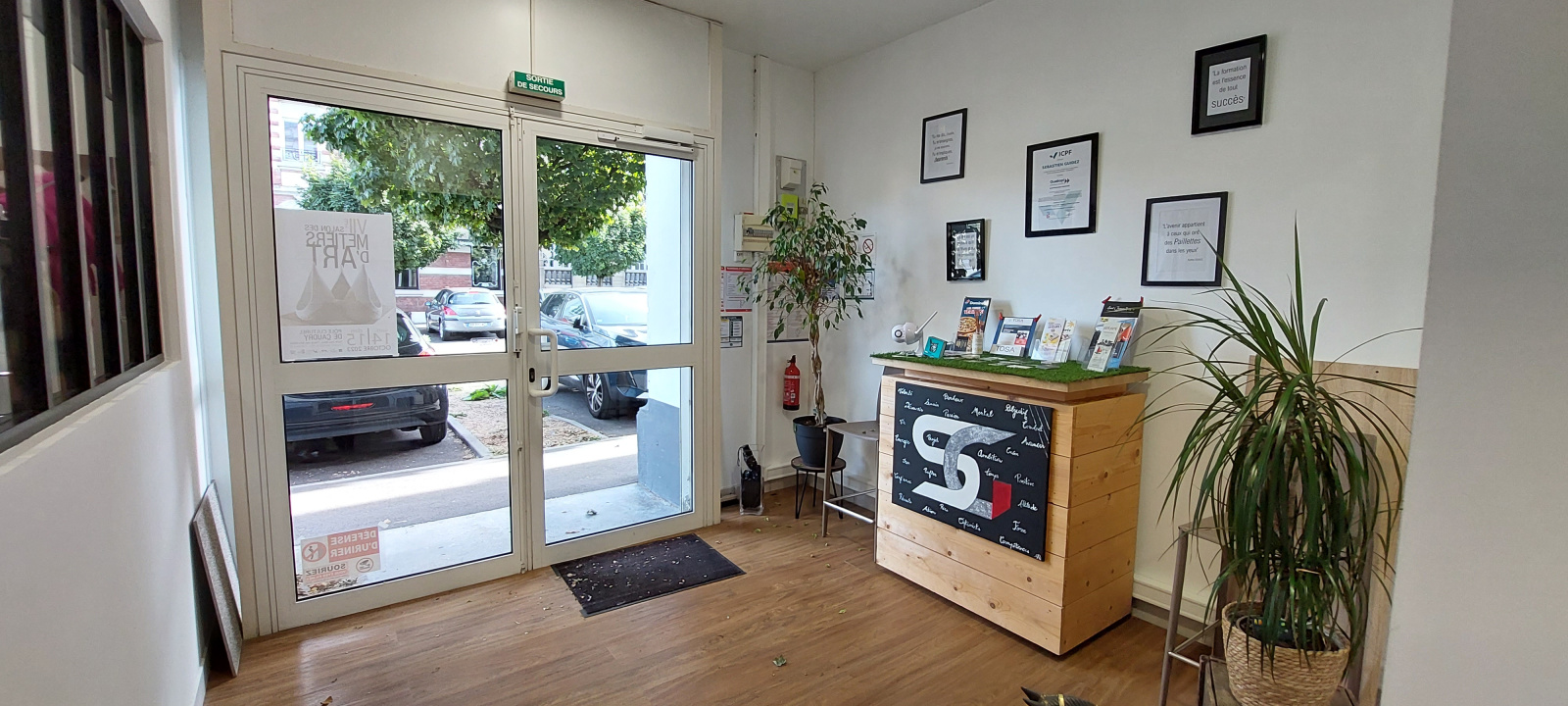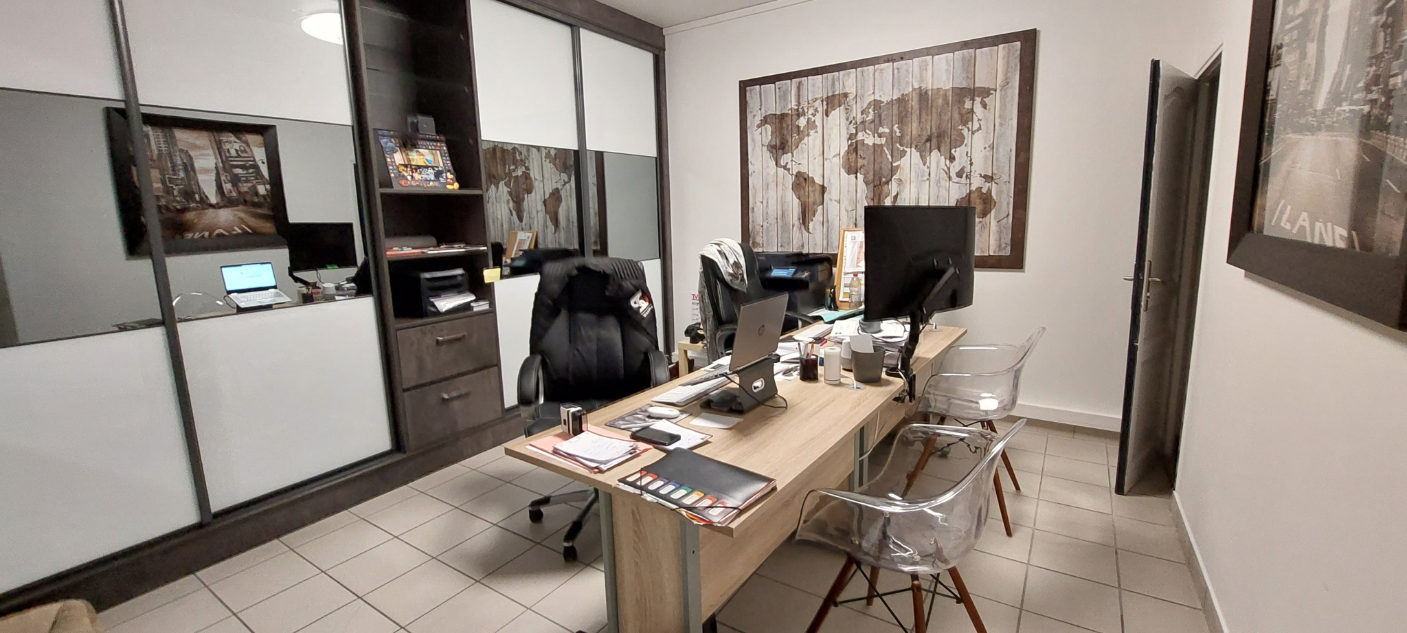 - 3 bureaux, garnd hall d'accueil, une remise/cellier, wc