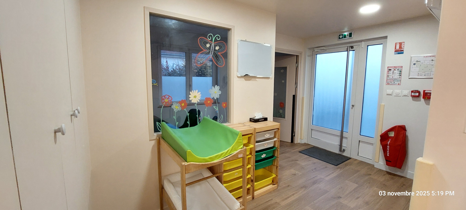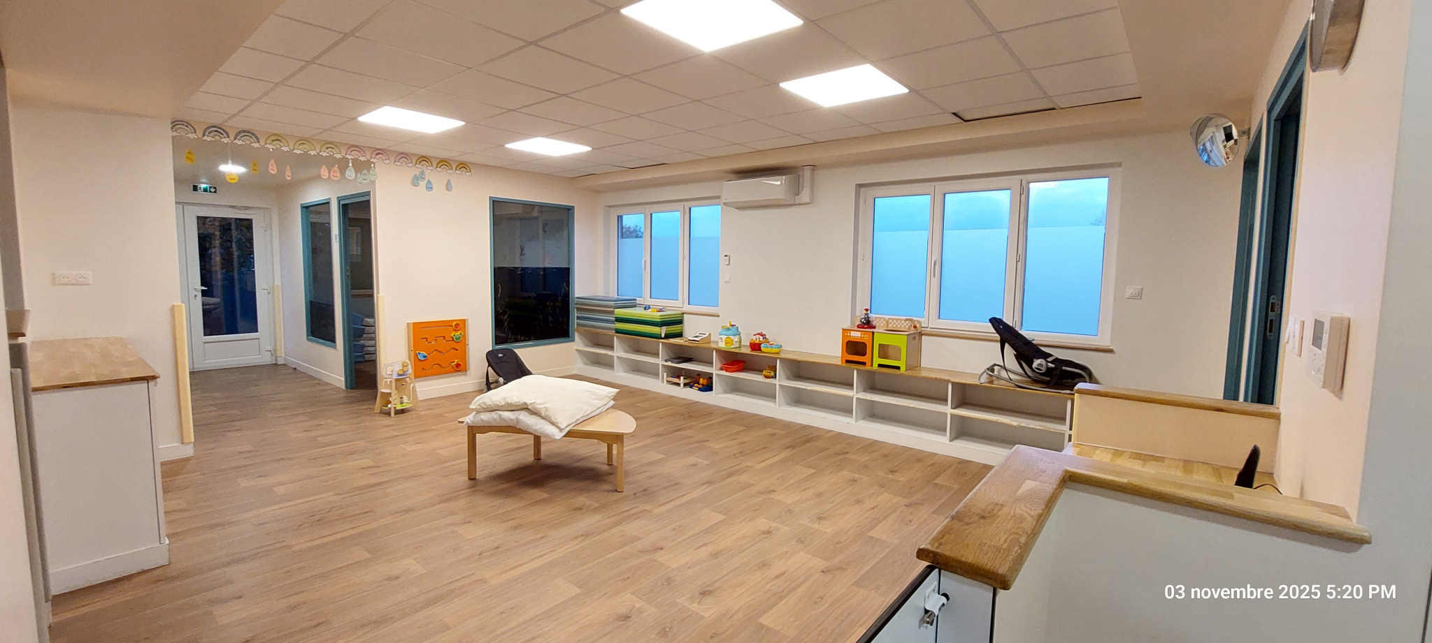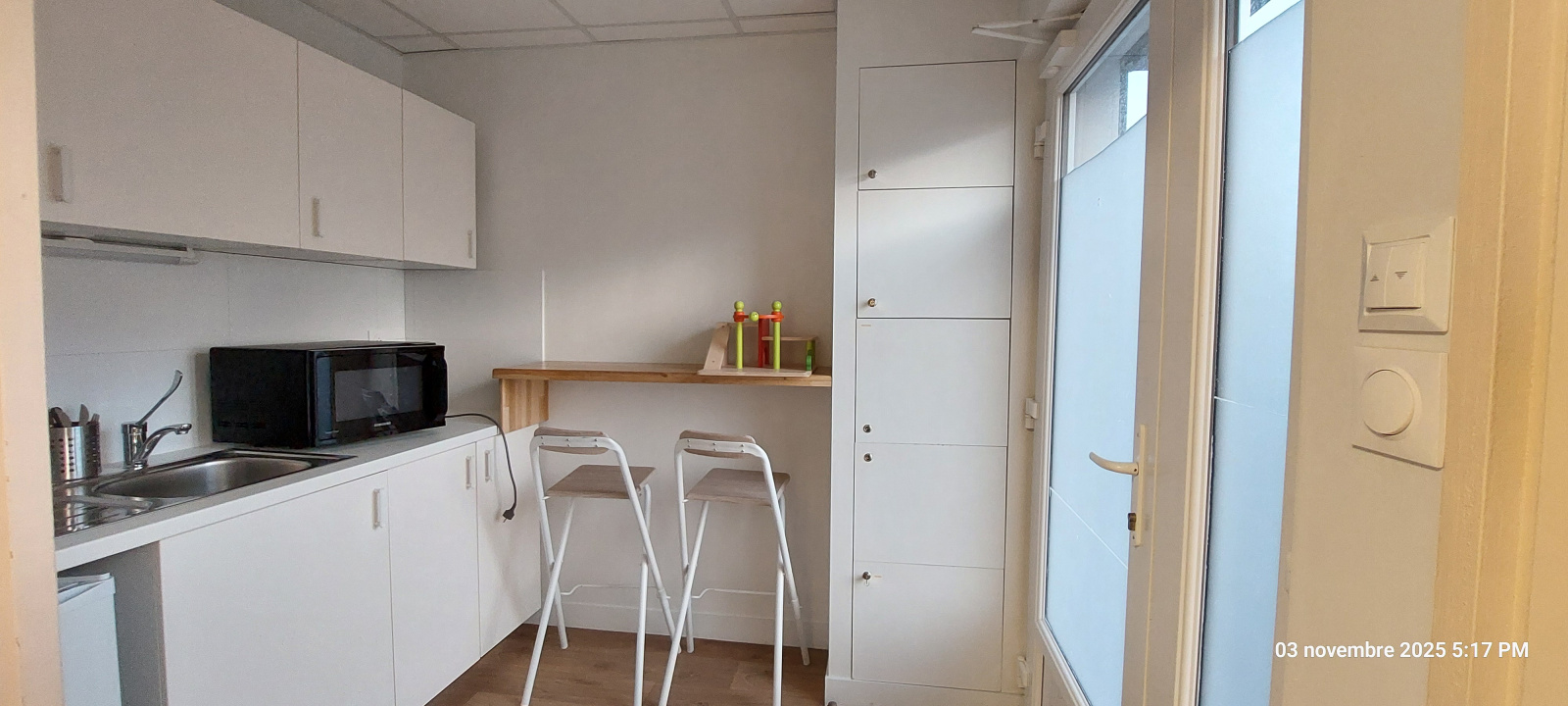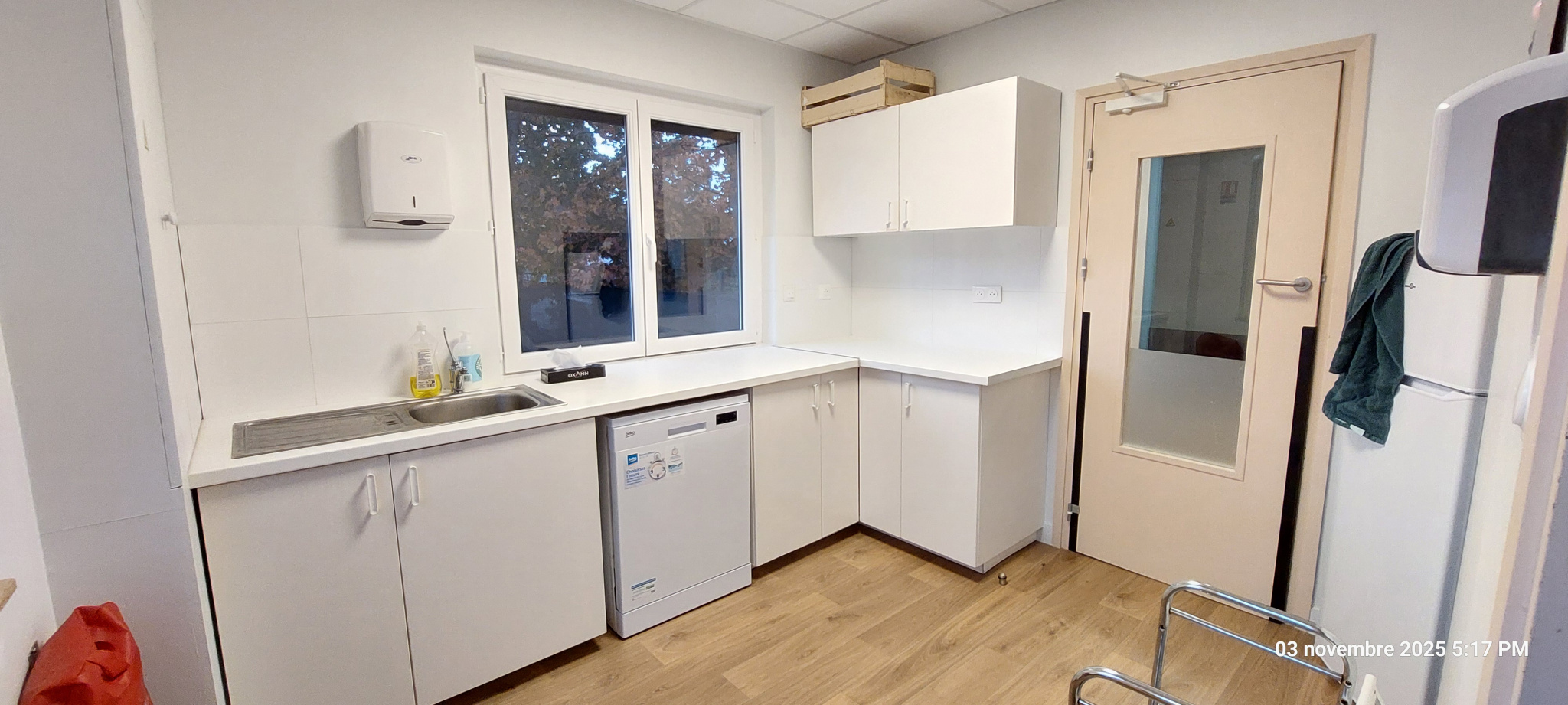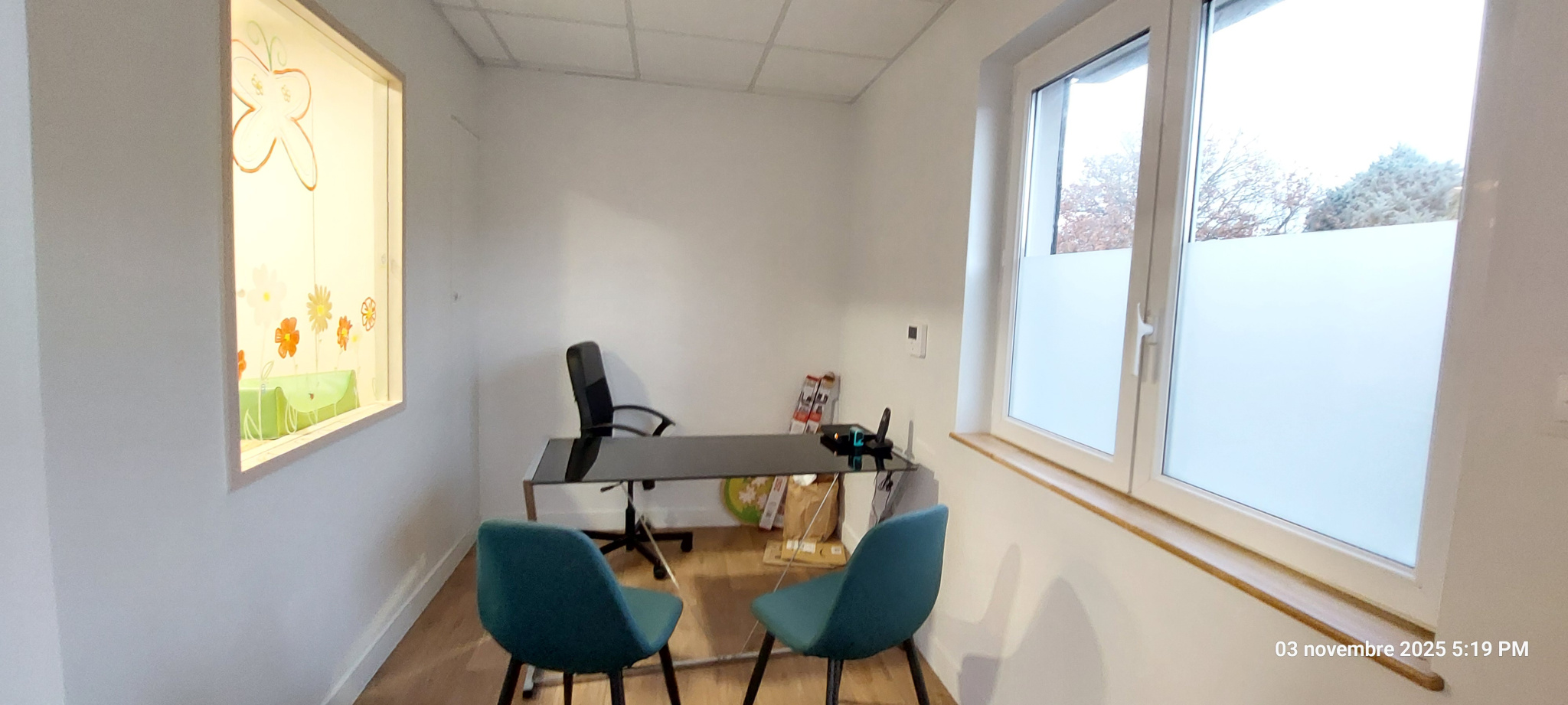 - accueil (8 m²), 3 bureaux (de 7.25, 11.15 et 12.50 m²), une grande salle de réunion ou de co-working de 41.15 m², un réfectoire de 12 m², wc, une pièce de stockage ou d'archivage (8.65 m²)