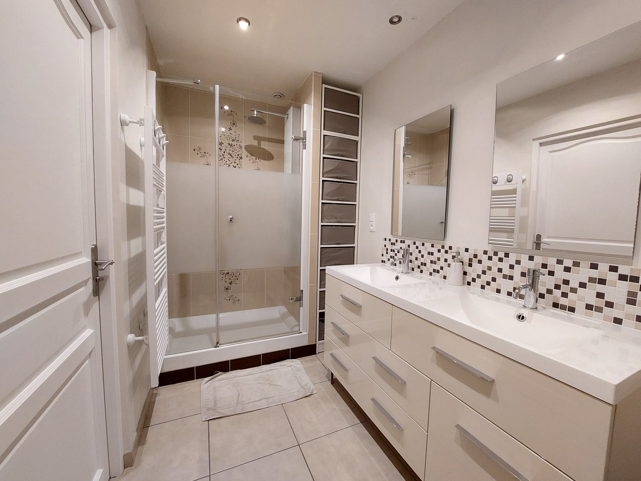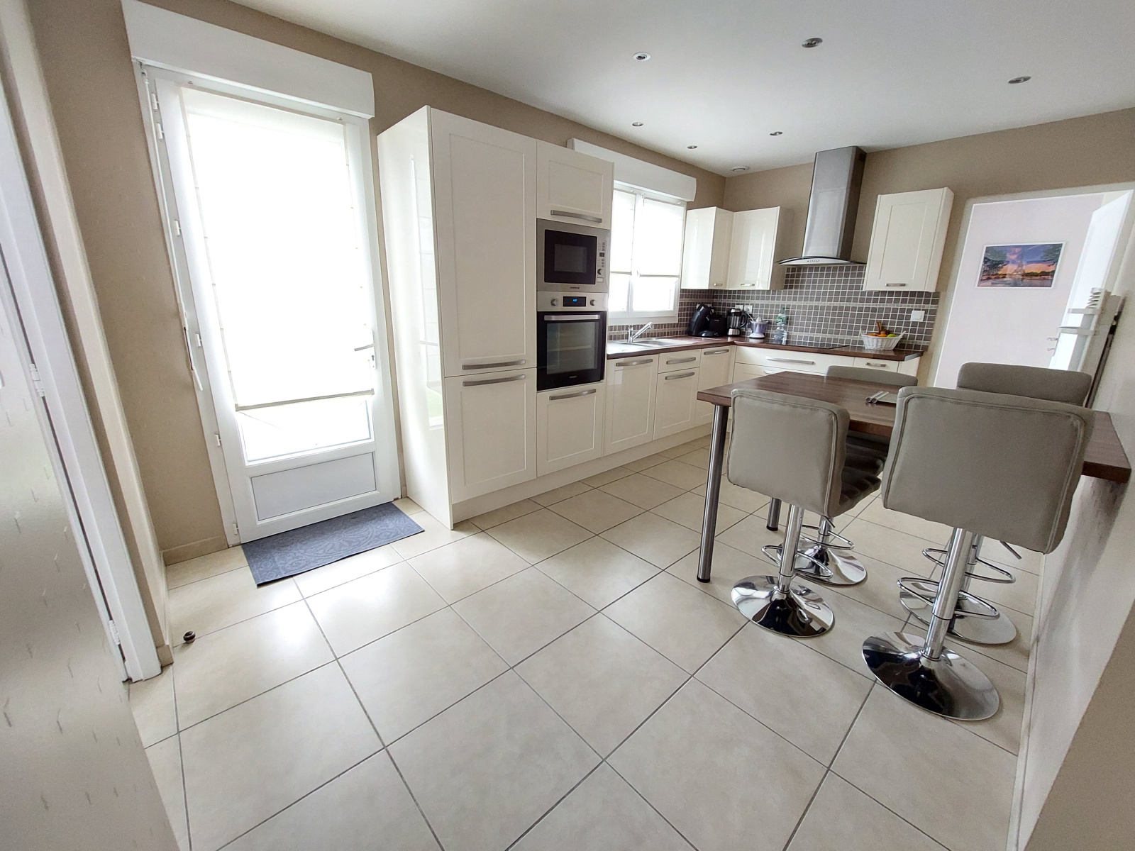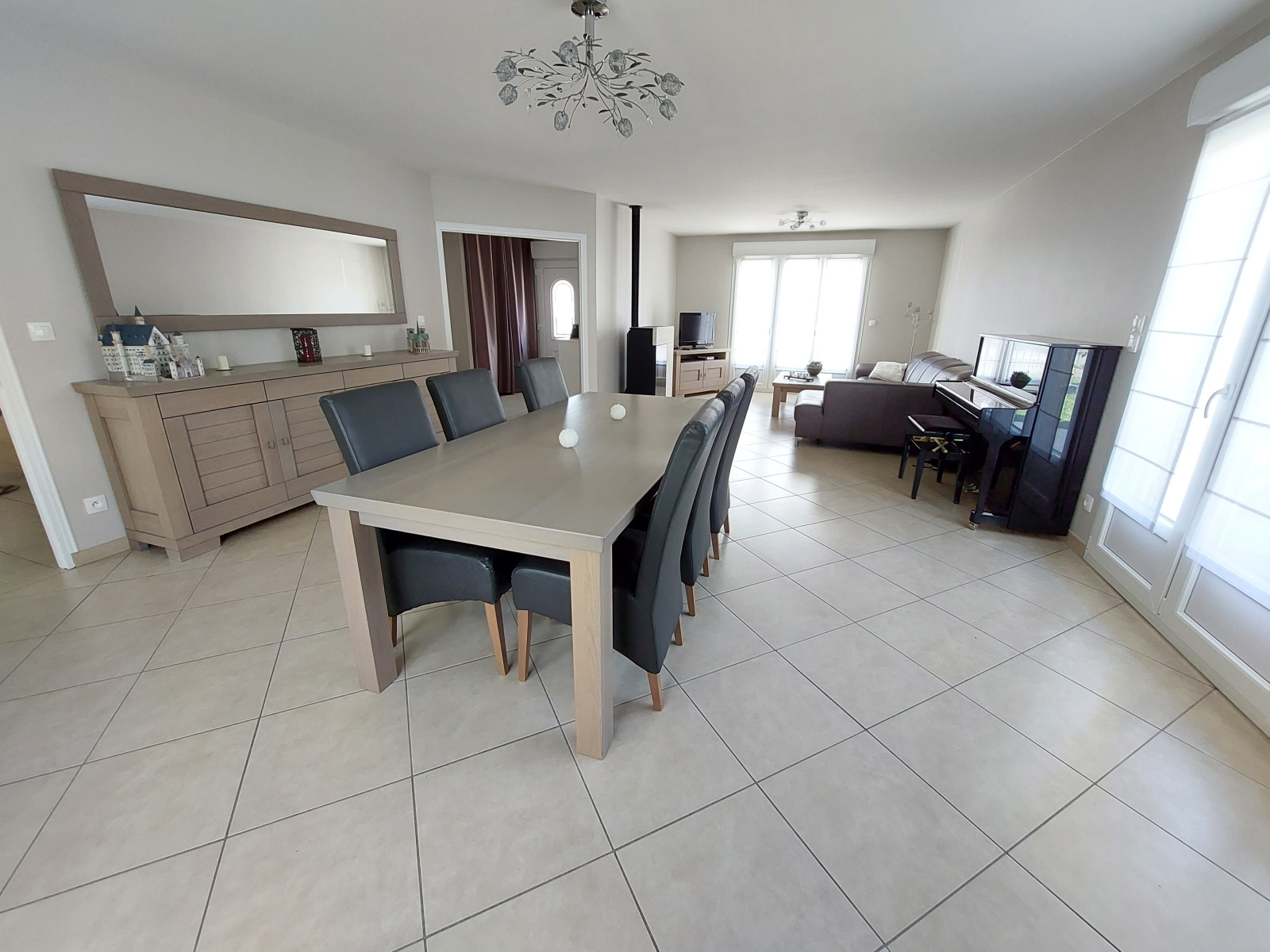 - hall d'entrée avec grand placard, salon/salle à manger de 45 m² avec poêle à granulés silencieux RIKA, cuisine entièrement équipée (four, plaques induction, hotte, lave-vaisselle, micro-onde, réfrigéteur/congélateur), 4 chambres avec placard (15, 13, 13 et 9m²), bureau, salle de bain avec baignoire et douche, wc, cellier/lingerie