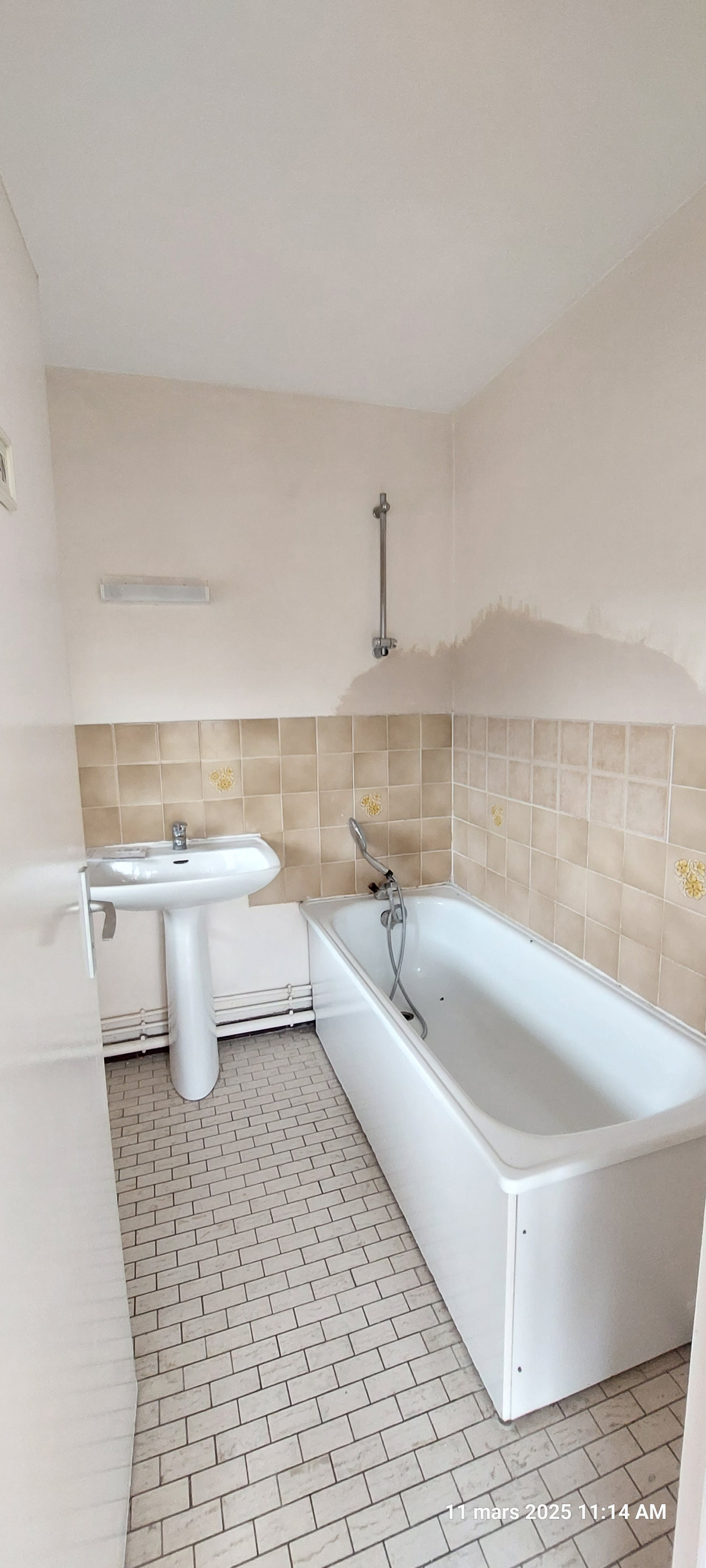 - hall d'entrée, salon/séjour, cuisine, chambre, salle de bain avec baignoire, wc
