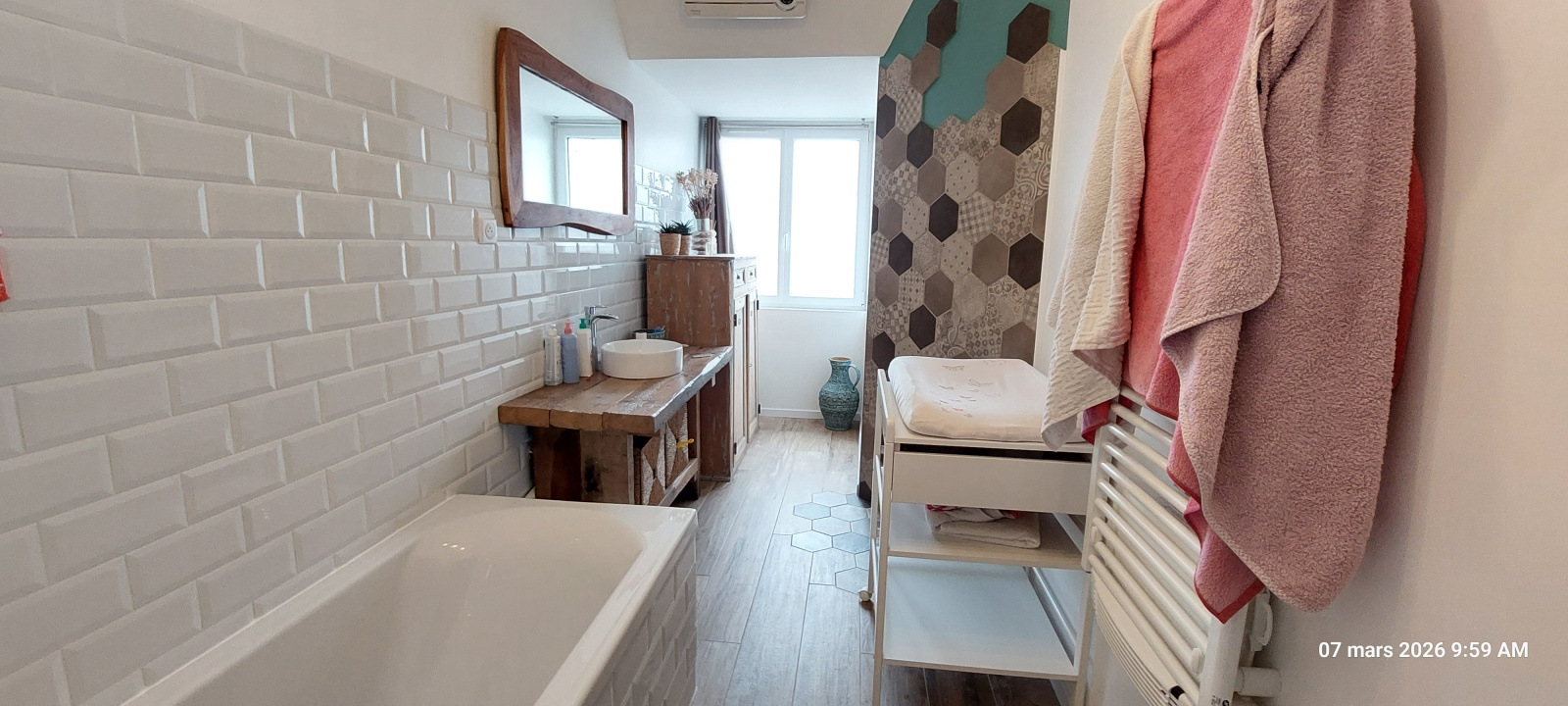 - à l'étage : palier, 2 chambres, salle de bain avec baignoire, wc, grenier
